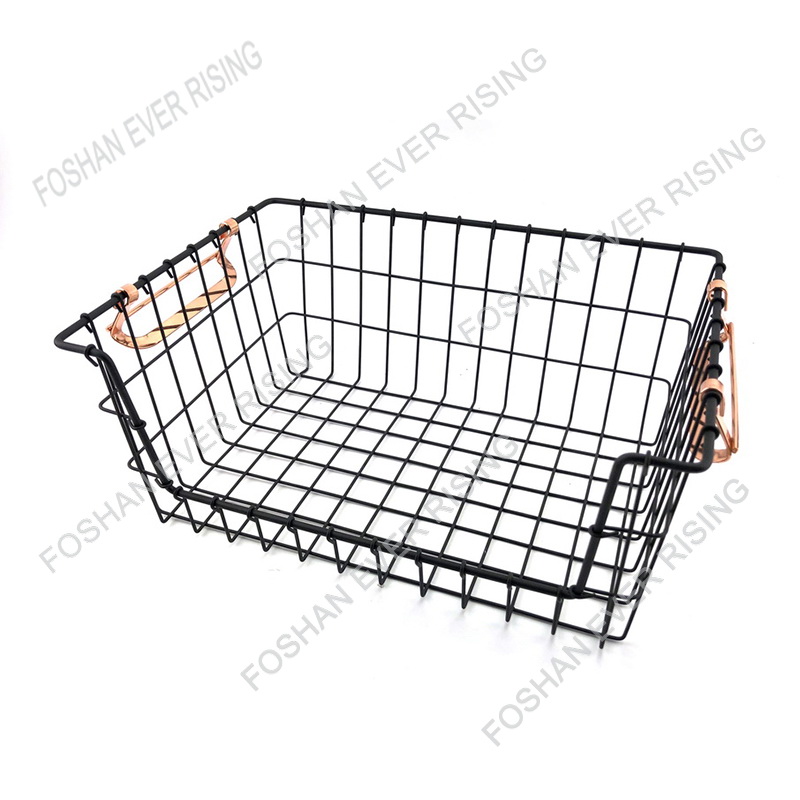Stackable design can save space.The black basket is perfect matched with copper handles.