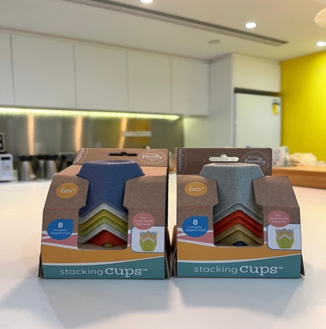 Our eco-friendly stacking cups, made from biodegradable materials like plant-based plastics and recycled components. This delightful multi-textured set is perfectly sized for little hands and will captivate your child's imagination!
