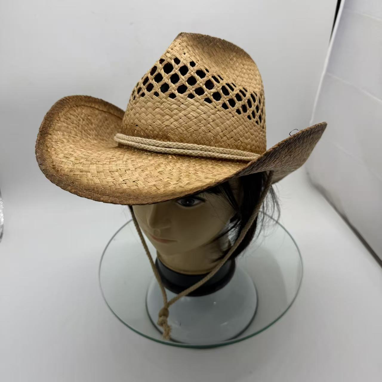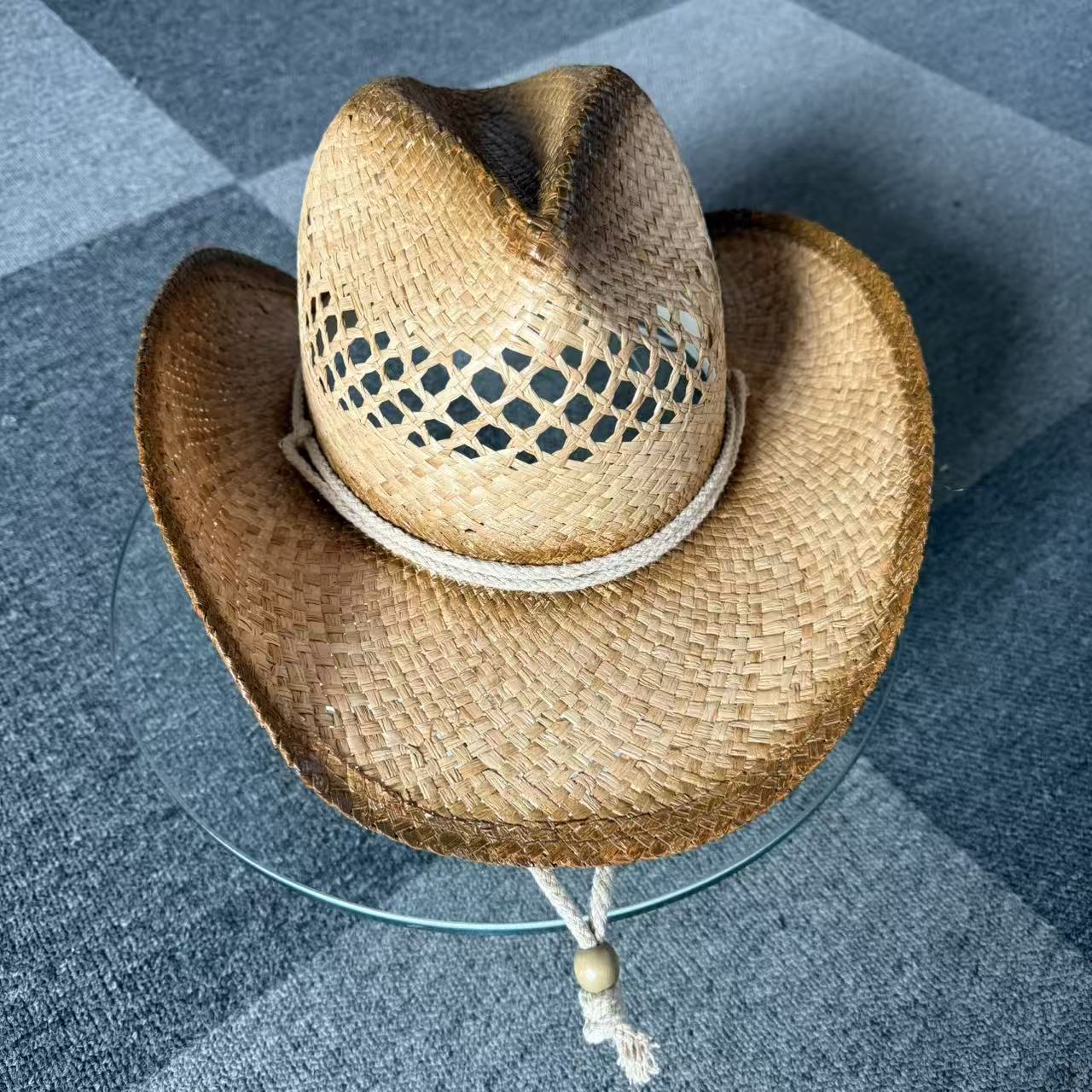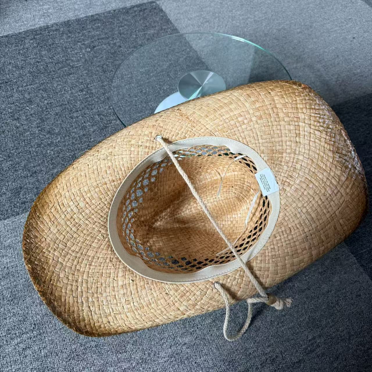 stained raffia straw cowboy HAT