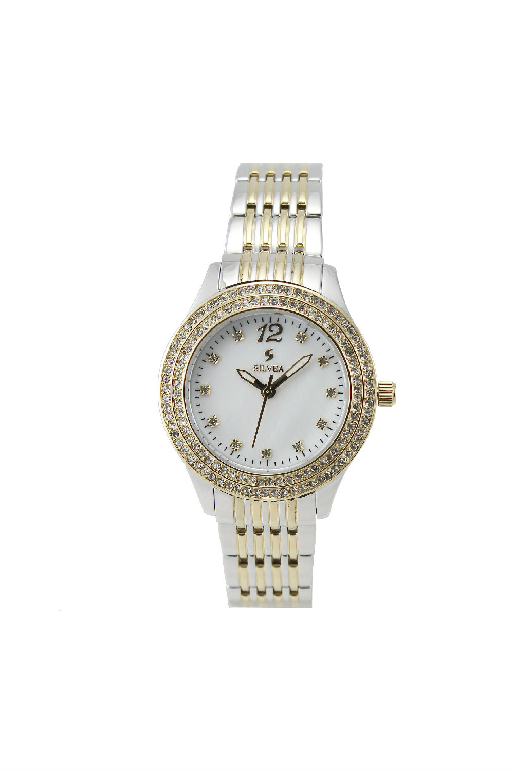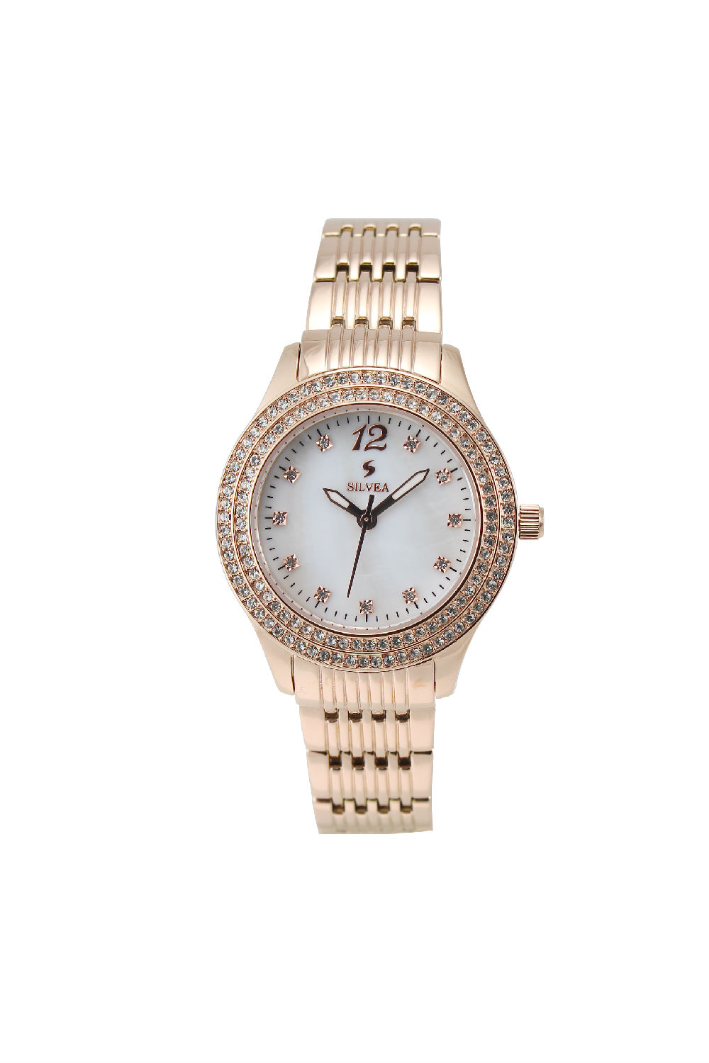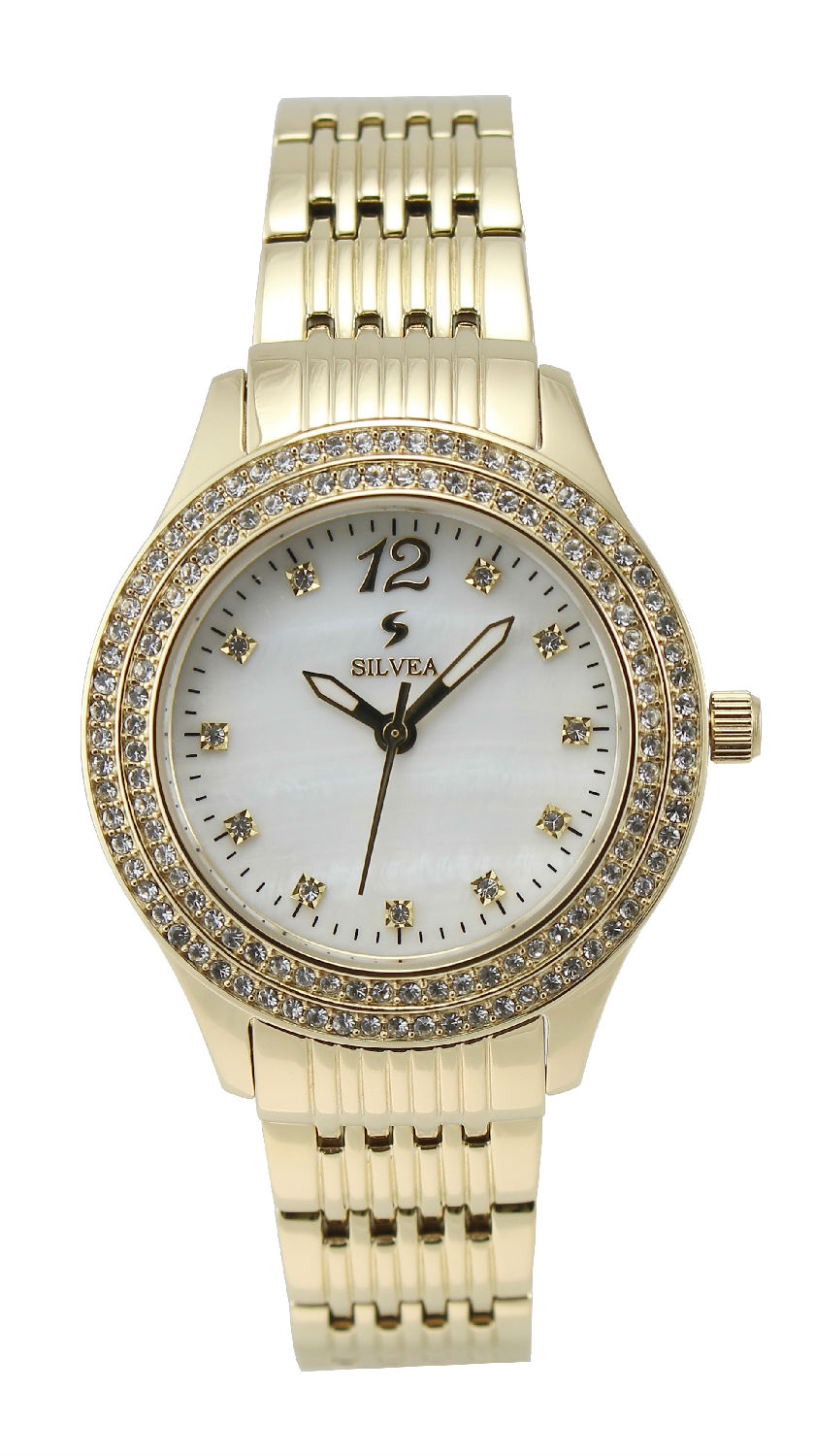 This gorgeous gold-finished watch is perfect to take you from day to night. A twinkling crystal-set bezel frames the simple dial with shiny accents. Matching with crystal hour indicators, this gorgeous piece makes an everyday accessory for more than just a time teller.