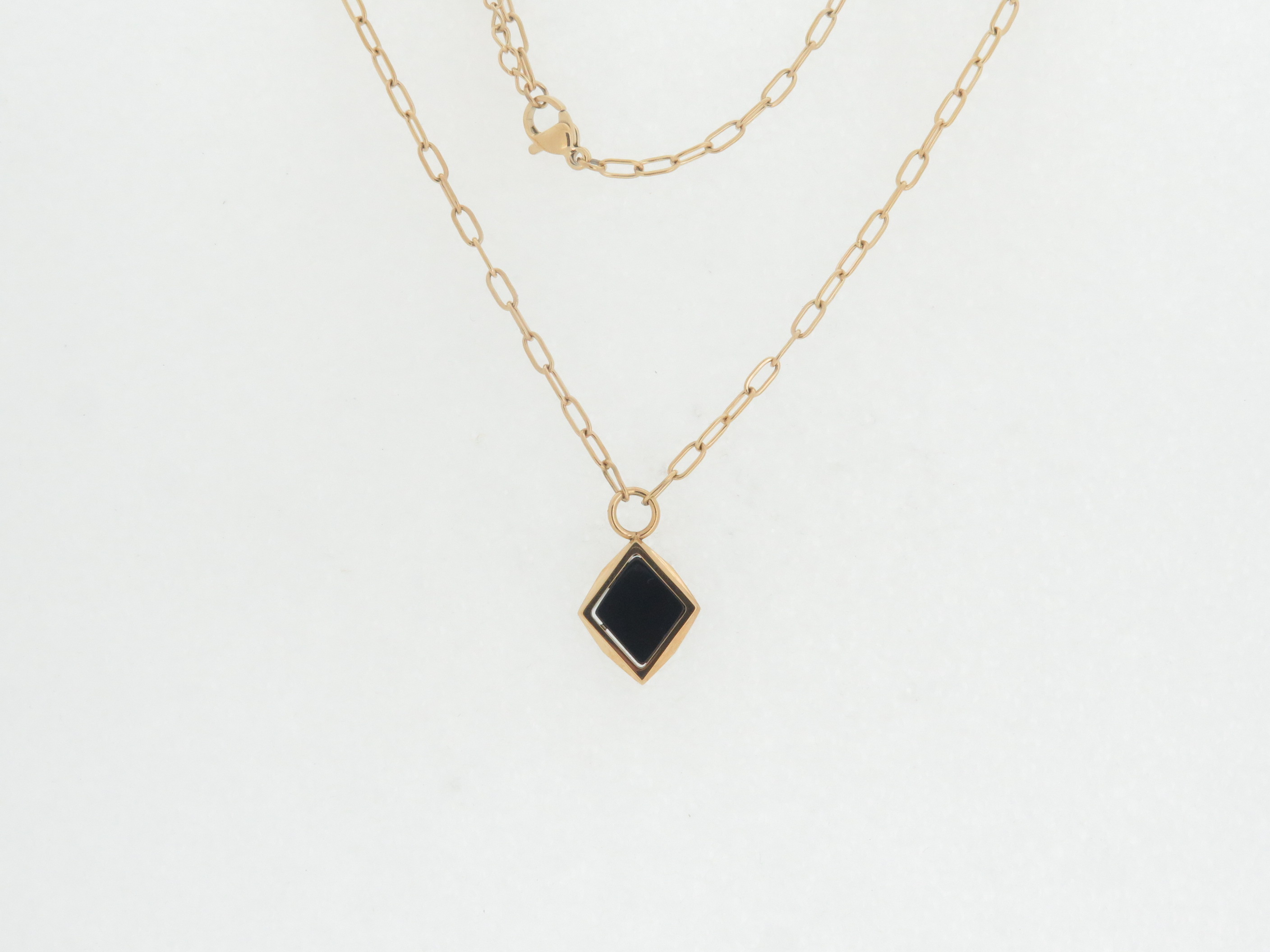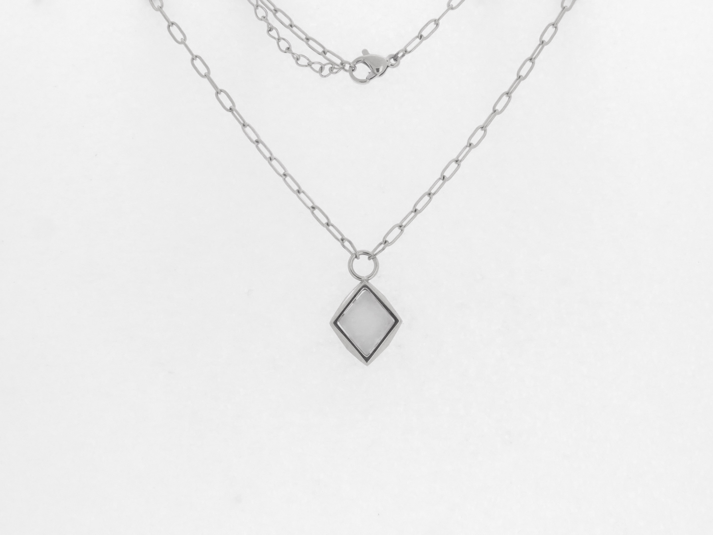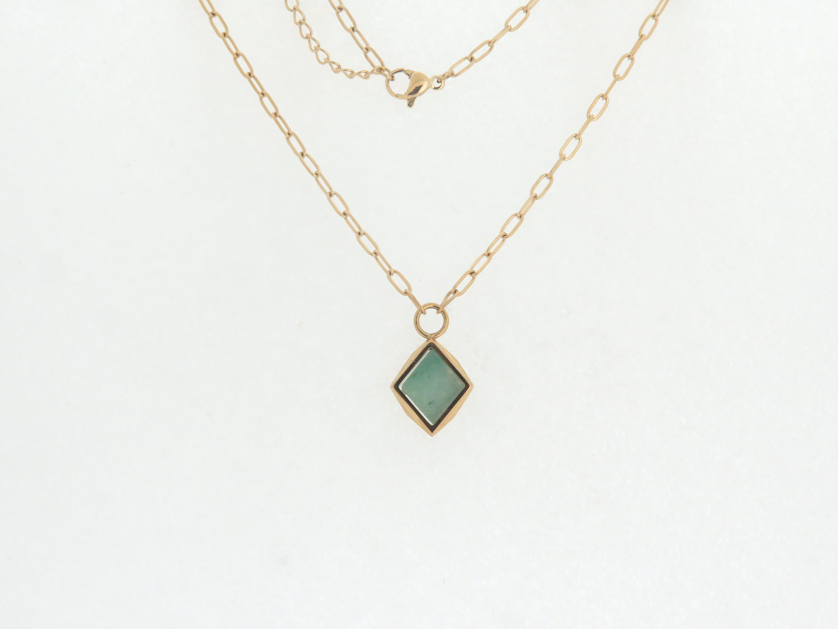 Stainless Steel Anchor Chain Necklace with Colour Stone