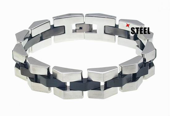 The distinctive silhouette of this stainless steel bracelets combines geometric style with a playful edge, finishing in two-tone high polish for understated luxury. The matching jewelry clasp fastening further promises easy wear on wrists.