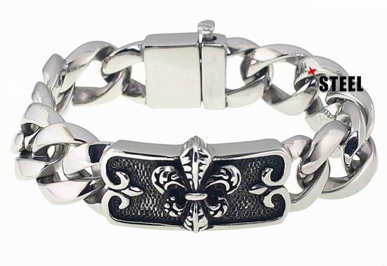 Detailed with an intricately adorned plaque, this stainless steel bracelet finishes on a retro note, boasting twisting and polished curb links to capture looks. Its crisp clasp closure further prompts secure fastening on wrists throughout the day.