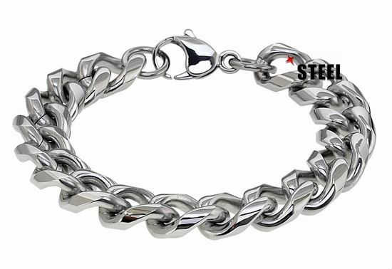 An idiosyncratic take on contemporary style, this chunky stainless steel bracelet showcases twisting curb chain with a bold lobster clasp for secure fastening on wrist. Its overall high shine finish further lends a hint of street to pair everyday outfits.