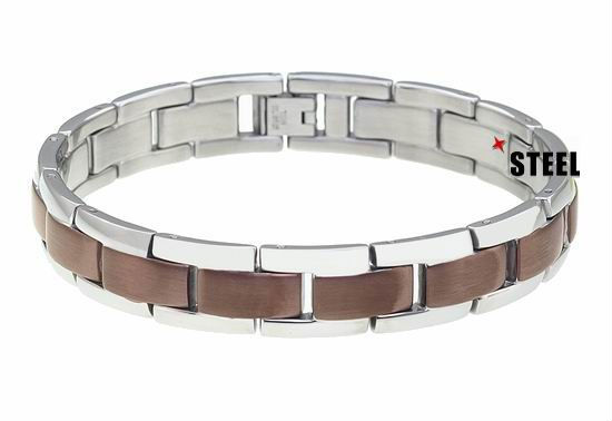 Make a subtle statement with this modern bracelet. Simply styled with a row of brown-plated links sandwiched between the steel-toned edges, this stainless steel accessory is easy to match with both casual and formal ensembles. An easy-to-use jewelry clasp makes putting it on and taking it off a breeze.