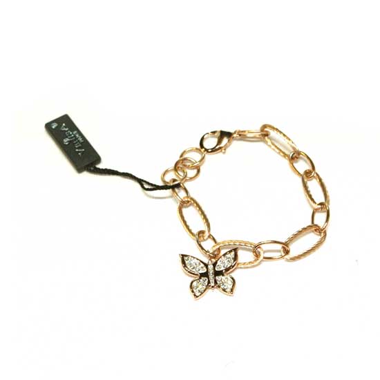 This stainless steel bracelet features a lovely butterfly-shaped charm for a gracious touch. Boasting a splendid glossy finish, the charm is set with sparkling CZ stones that are dazzling. Adorn your wrist with this eye-catching bracelet.