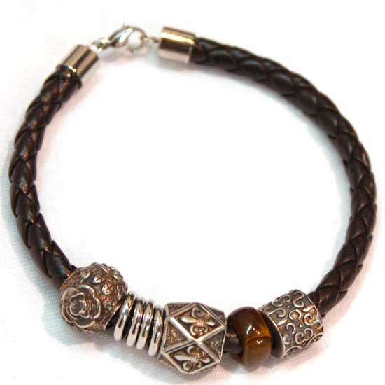 This stainless steel bracelet is chained with a leather cord for a fashionable sense. The stainless steel charms come with a stylish antique finish. This stainless steel bracelet is a fashionable piece to wear with casual outfits.