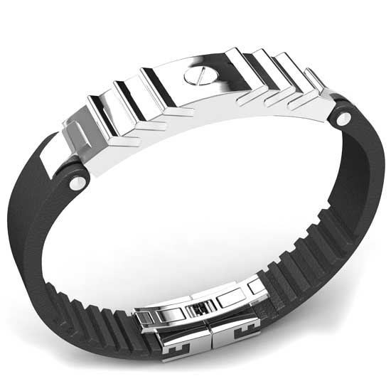 This stylish men's bracelet is crafted from 316L stainless steel and PU rubber. It showcases a highly polished finish with long-lasting shine. The bracelet is secured with a butterfly buckle for added safety.