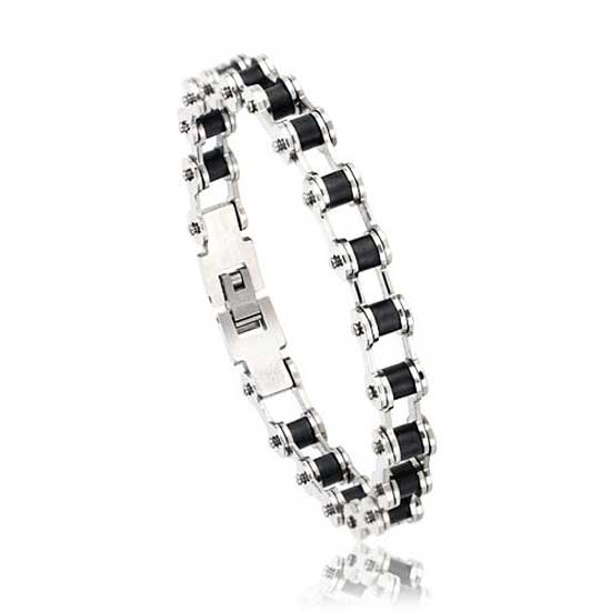 This stainless steel bracelet comes with black columns to create a unique look. It is paired with an advanced buckle for wearers’ convenience. This characteristic stainless steel bracelet is an ideal choice for men.