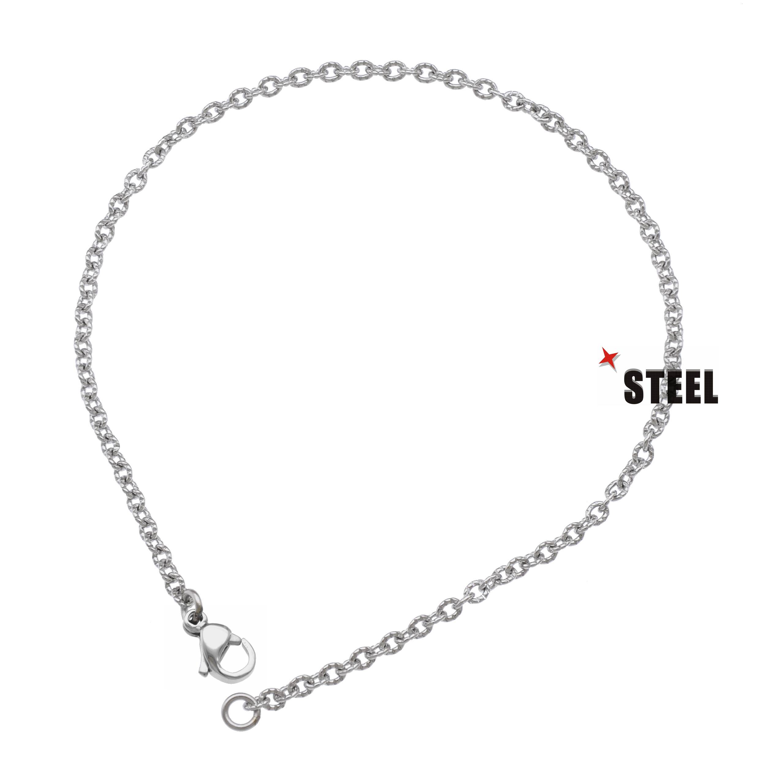 Perfect for displaying all your favorite charms, this stainless steel chain bracelet is a must-have to complete your exclusive mix-and-match accessory. Elegantly crafted with a slim cable-chain profile, it boasts lustrous allure in a high-polish finish with added delicacy lent by the distinctive texture.