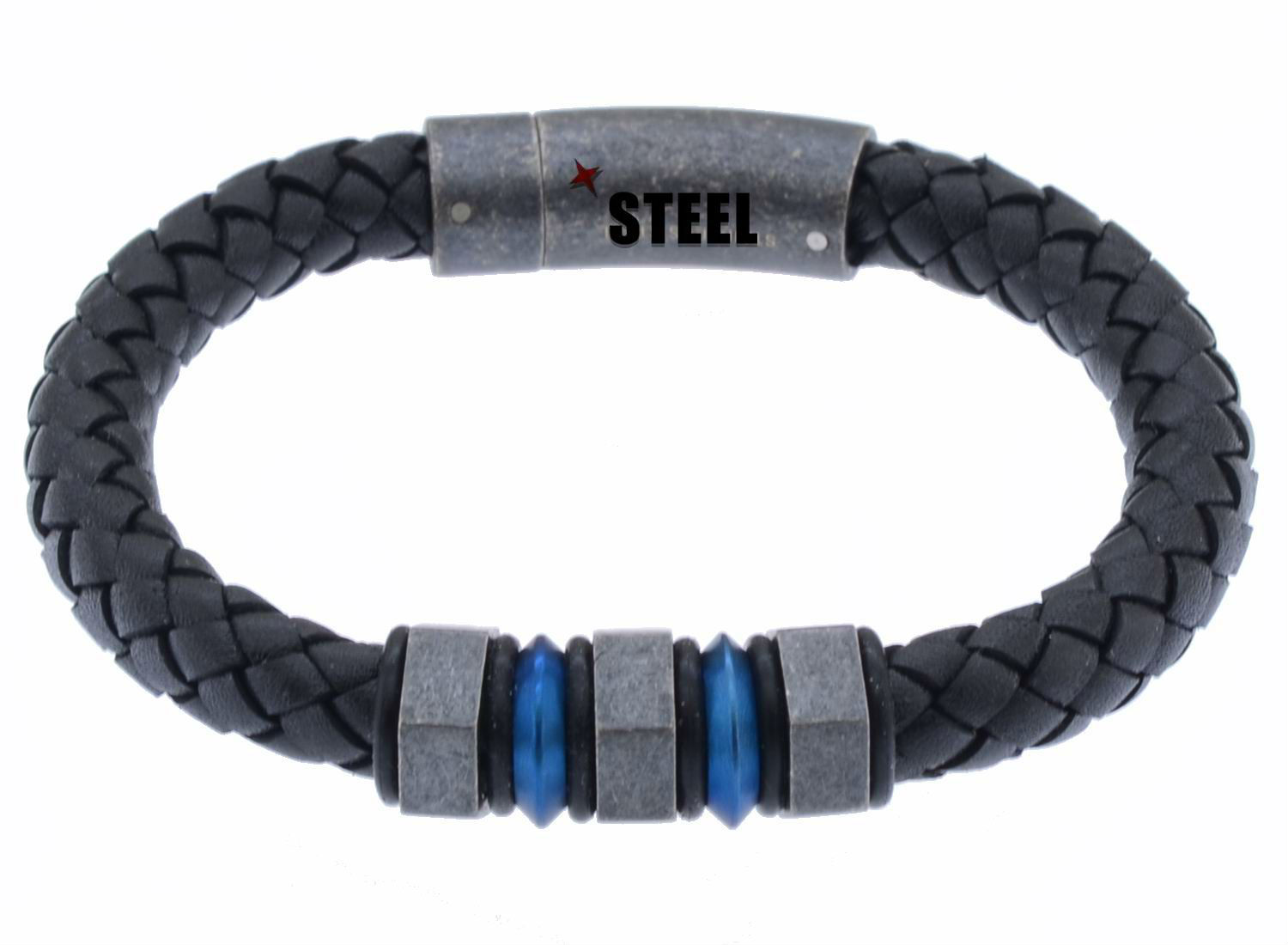 • Fashion stainless steel bracelet with braided leather