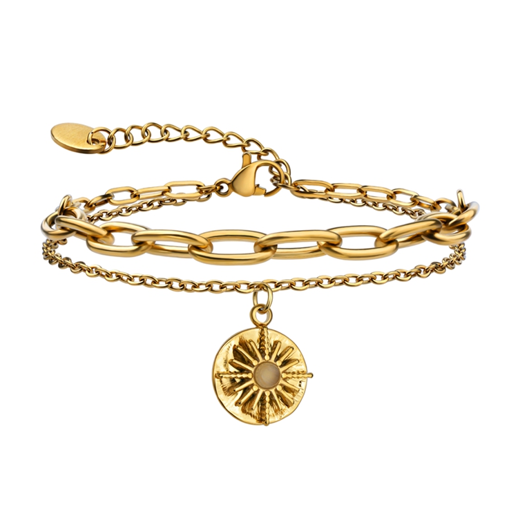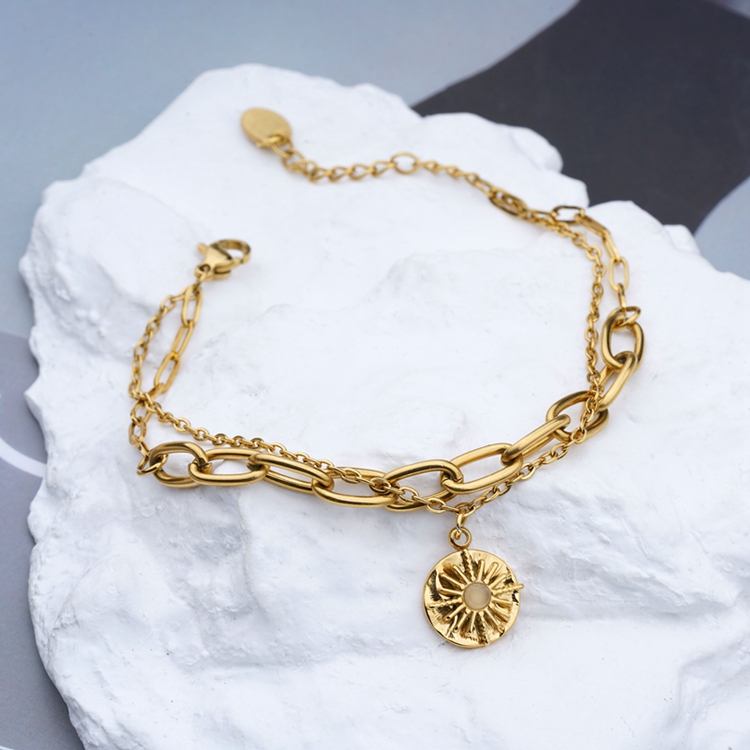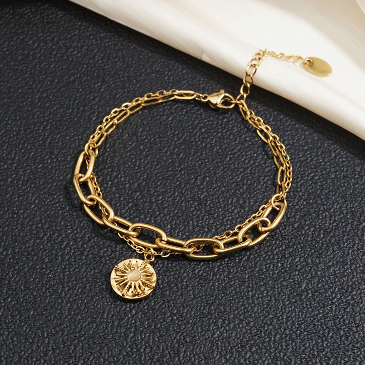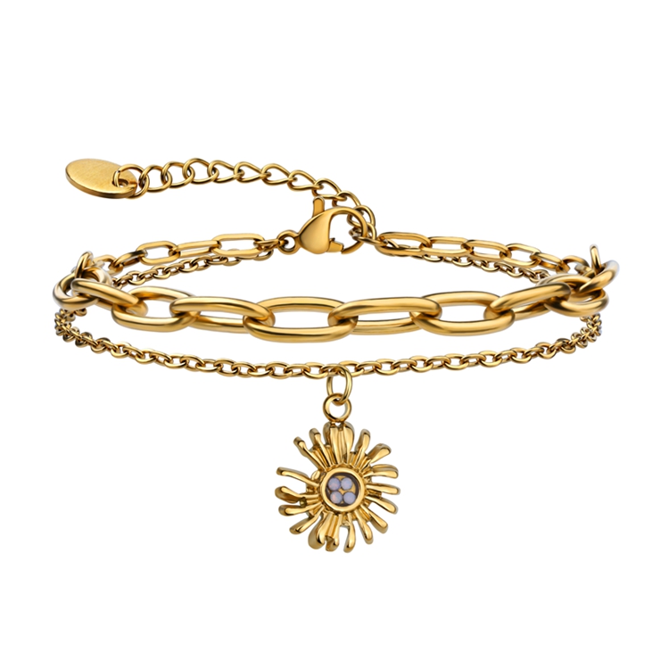 *Stainless Steel Daisy Flower Charm Girl Double Layers Link Bracelet