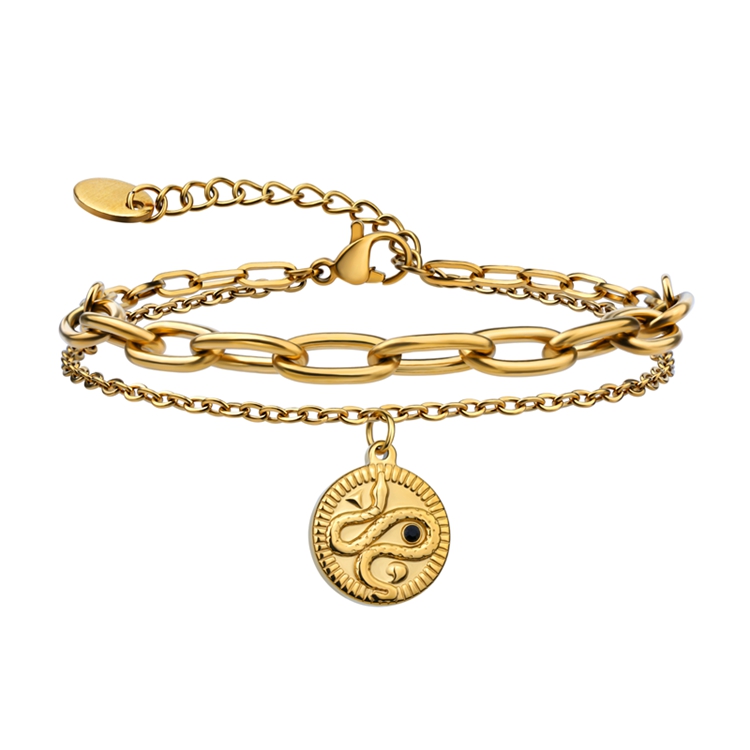 *Round Disc Snake Relief Print Pendant Bracelet