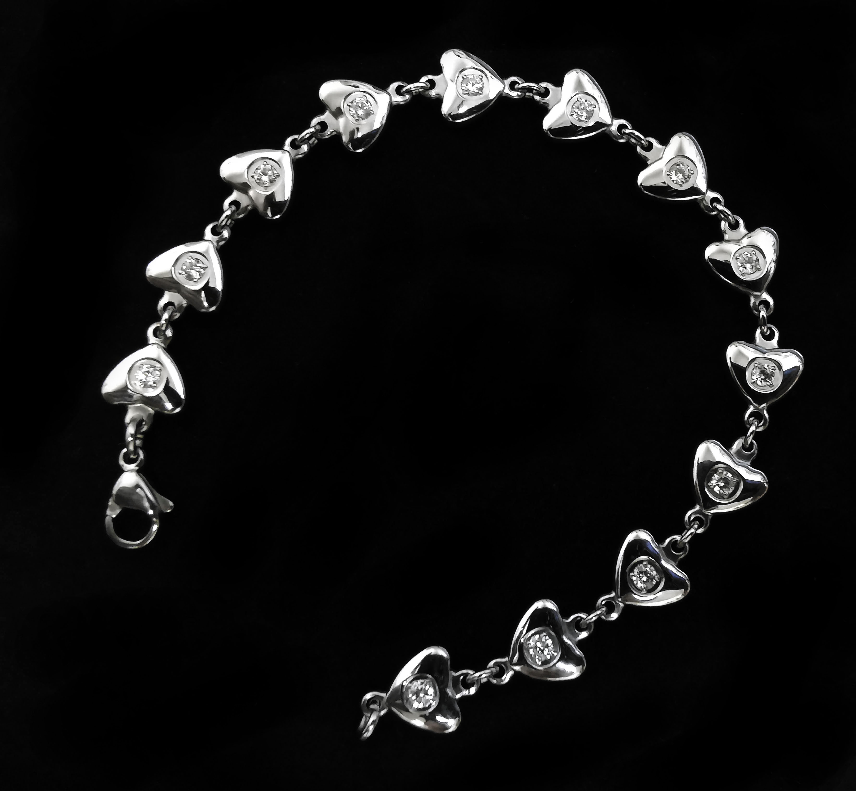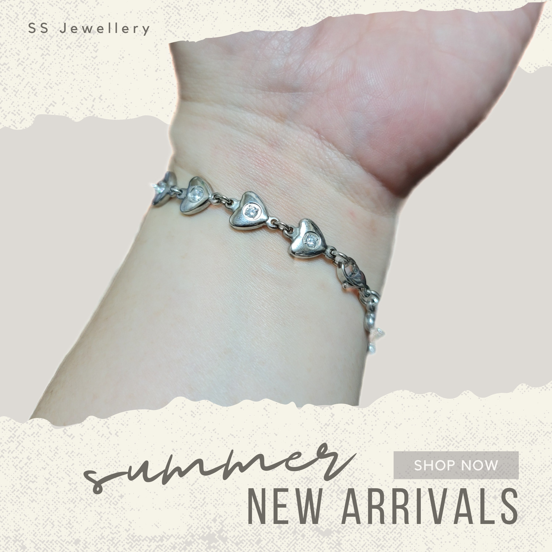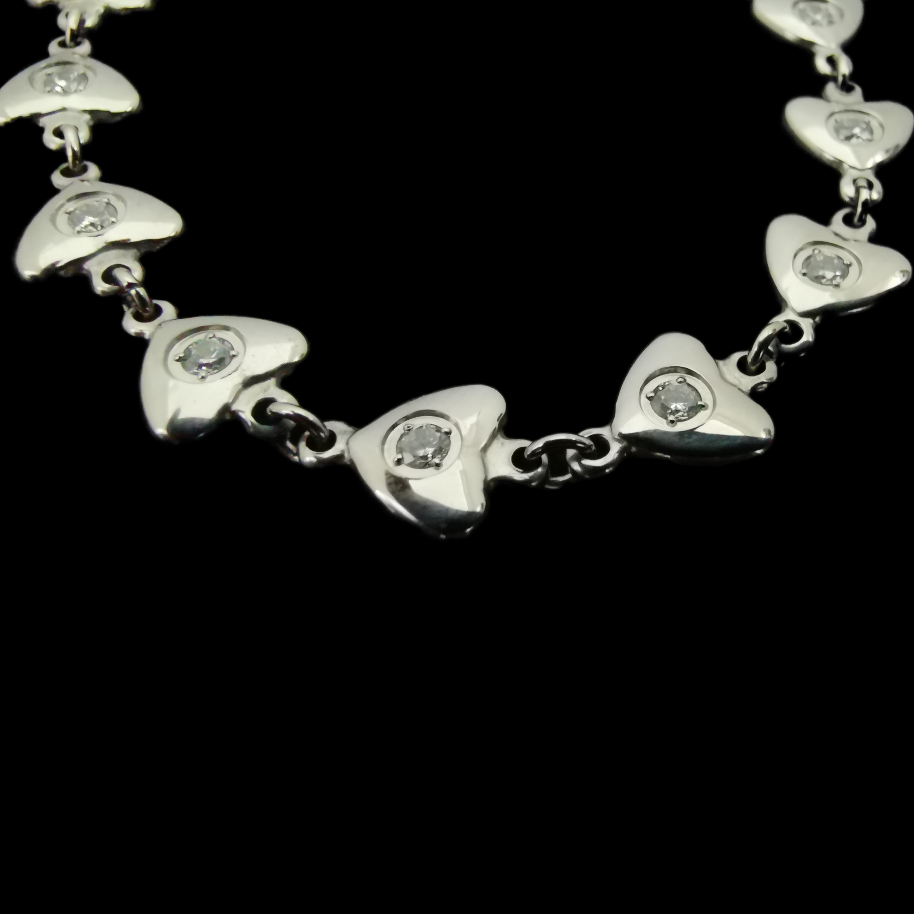 Elevate your style with this elegant heart-shaped bracelet, adorned with dazzling white cubic zirconia stones. Crafted for timeless beauty, its polished finish and delicate design make it perfect for everyday wear or special occasions. A must-have accessory that adds sparkle and charm to any outfit.