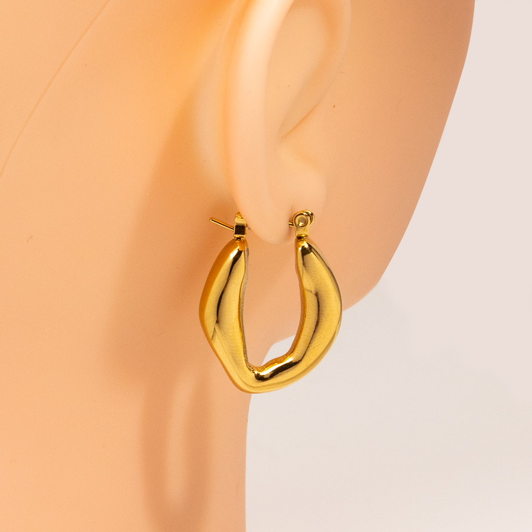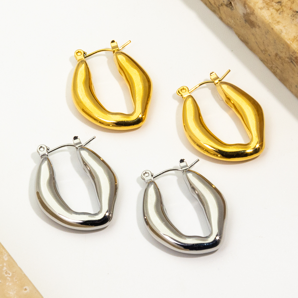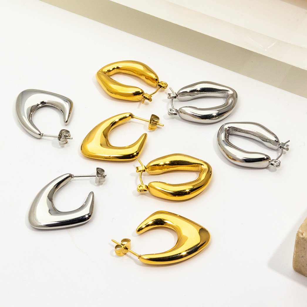 2024 New Arrival Gold Plated Chunky Hoop Earrings Waterproof Jewelry Stainless Steel C-Shaped Geometric Jewelry