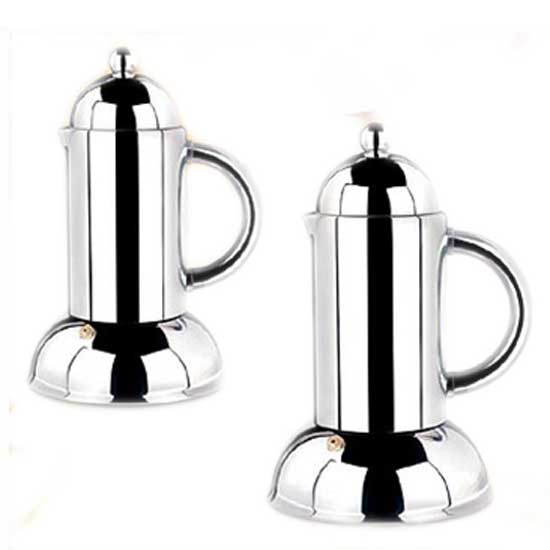 The coffee maker shows a high-gloss finish. The robust stainless steel construction offers lasting durability with resistance to corrosion. This handsome coffee maker is a great choice for coffee lovers.