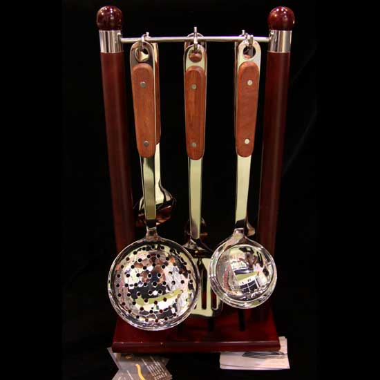 These cooking utensils are made of high-grade stainless steel for the sturdy construction. They come with wooden handles for excellent heat resistance. The utensils are the ideal items for every household.