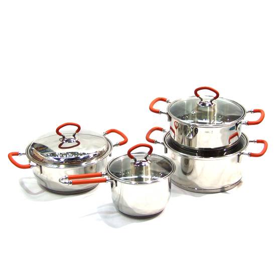 Featured is a stainless steel cookware set, the set includes 4 cooking pots in different sizes. Designed with heat-proof handle and glass lids, making them the ideal cooking pots for both home and professional use.