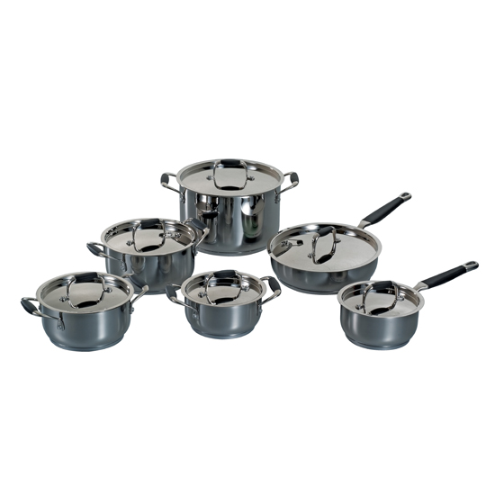 The stainless steel kitchen utensils accent their glistening look. Users can prevent their fingers from finger burns with the black coating handles. The encapsulated base is made to speed up the heating process.