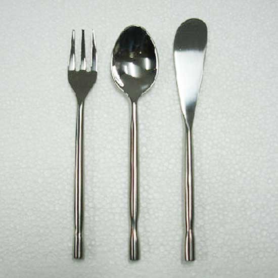 This is a handmade stainless steel mini cutlery set including three pieces. It is suitable for an ideal gift for kids. Each piece is made with excellent craftsmanship and attention to detail.