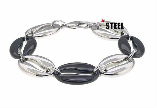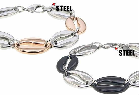 Linked with the coffee-bean-like oval-shaped pieces in alternative tones, this high-polished stainless steel bracelet will elevate your look with a sense of modern aesthetics. Sleek and refined, this bracelet is ideal as a gift for your loved one or as a unique addition to your jewelry box.