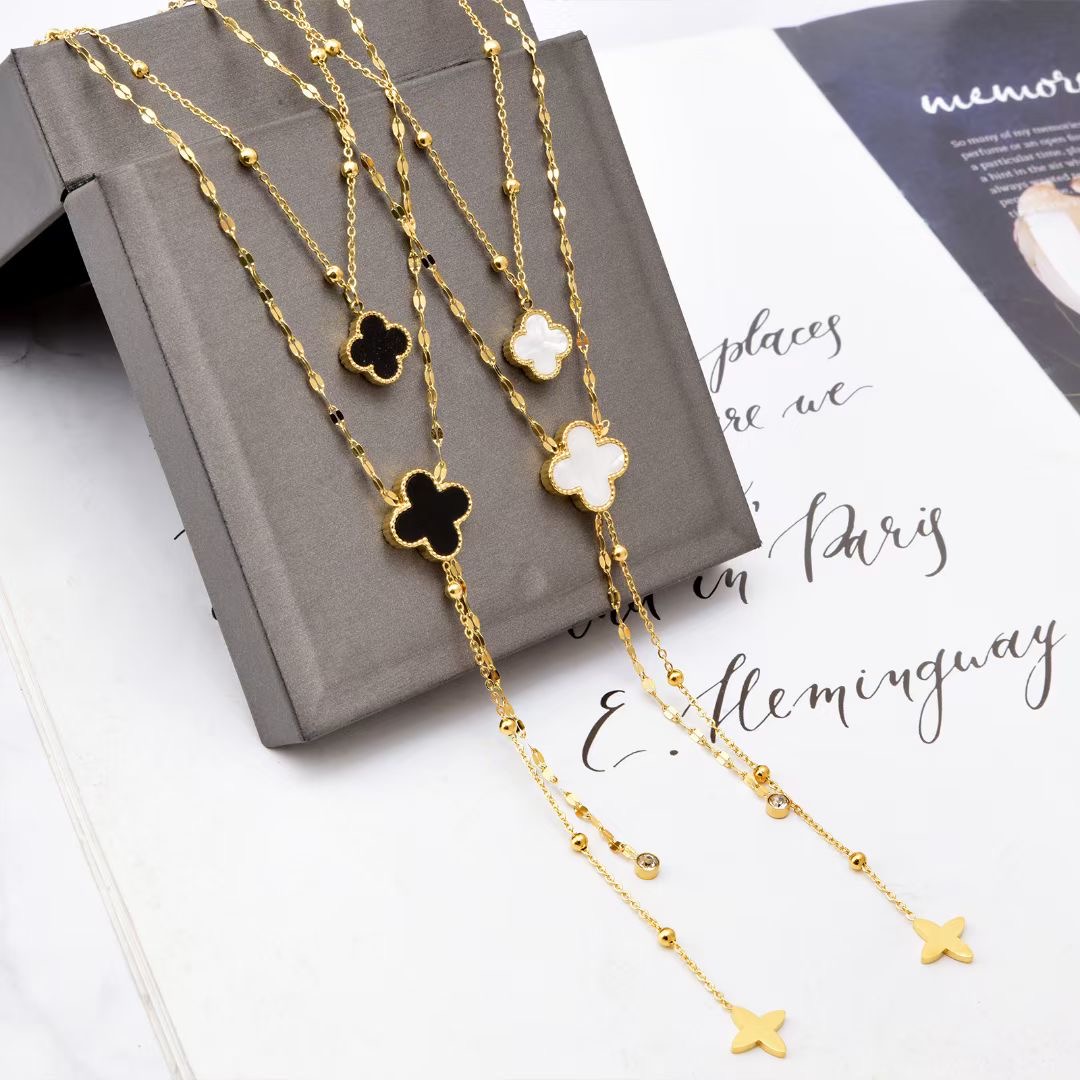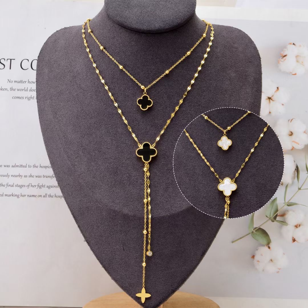Double layer Clover Necklace, custom jewelry in stainless steel for women