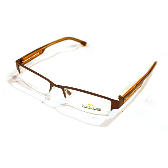 Pictured is a pair of eyeglasses with a smart half-rim design. The stainless steel frame and the acetate temples suggest durability and a lighter weight. The adjustable nose pads ensure added comfort for users.
