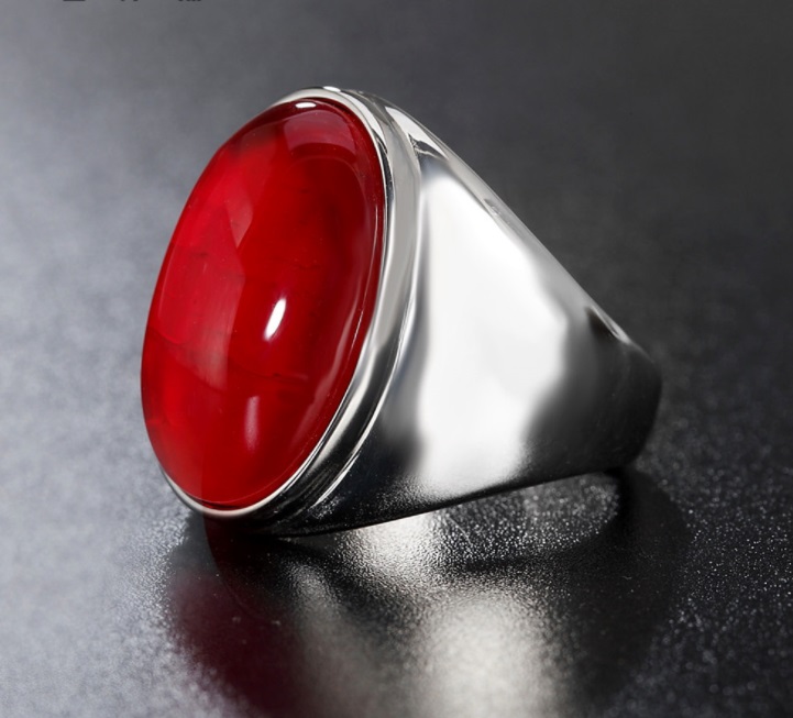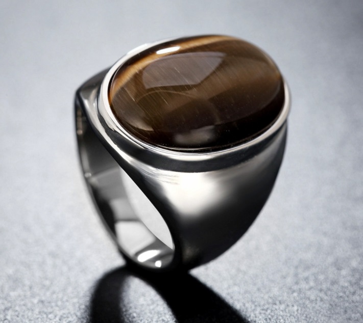 Stainless Steel Green Sapphire Ring Opal Gold Ring for Men