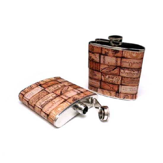 Displayed is a stainless steel hip flask wrapped with PU leather for a luxurious touch. The full color logos also make the hip flask charming and characteristic. This well-designed hip flask is a wonderful gift choice.