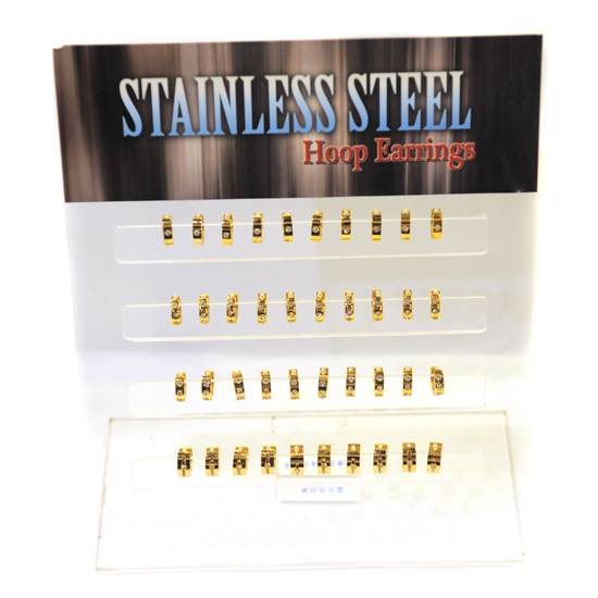 These stainless steel hoop earrings are of high quality and high durability. They are in golden colour embellished by sparkling stones. They are nice to match with casual wear stylishly.