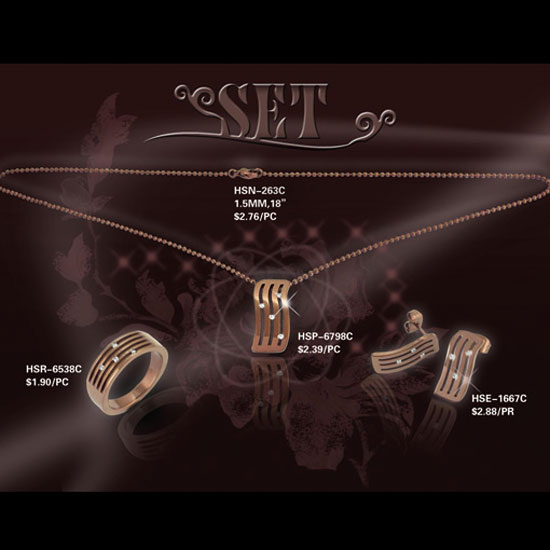 This series of jewelry includes bracelets, rings, earrings, and necklaces. Each piece of jewelry is meticulously crafted with quality stainless steel for high luster and shine. With a simple yet fashionable design, this series of jewelry makes an easy match with ladies' various styles.