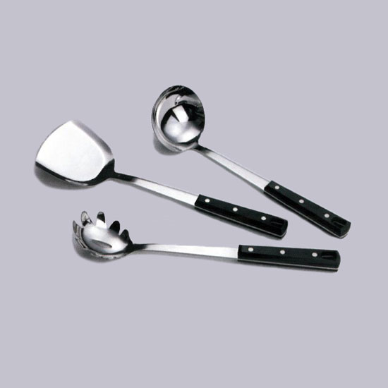 This kitchen tool set consists of a ladle, turner and spaghetti server. Each piece is made of stainless steel to boast a solid touch. This quality set is compatible with different types of cookware.