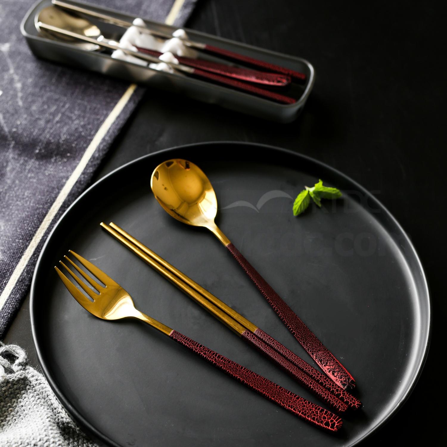Stainless Steel Korean Style Chopsticks fork and spoon Cutlery set