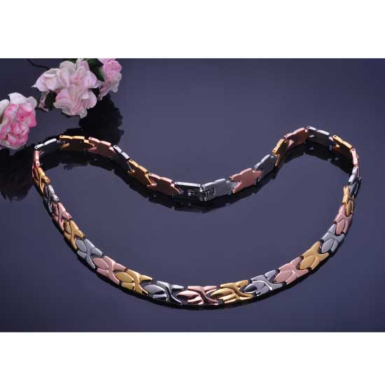Showcased is an exquisite bracelet made of stainless steel. The bracelet is plated in a 3-tone style with a matt finish. The sleek design of this bracelet brightens your look at once.