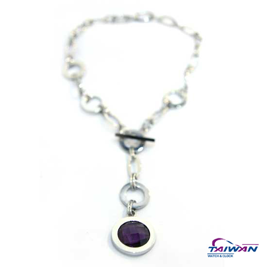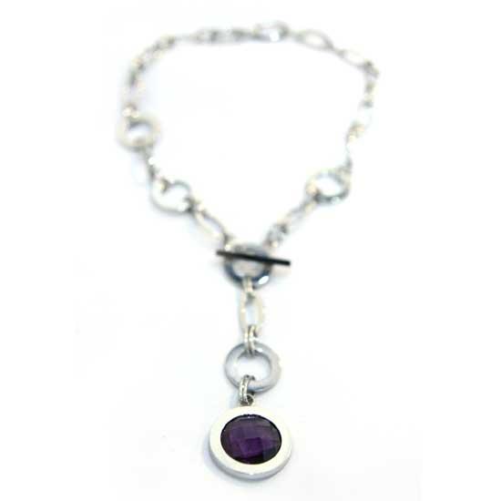 This stylish necklace features a link chain and toggle clasp with a single large faceted gemstone pendant. The jewelry is finely crafted of stainless steel in a polished finish. Enhance your everyday look with this beautiful necklace.