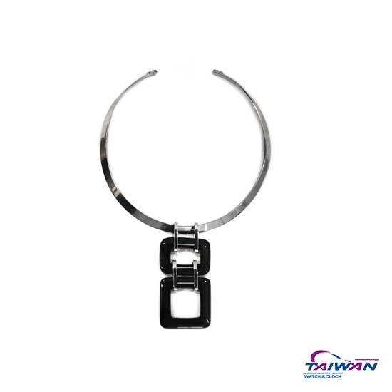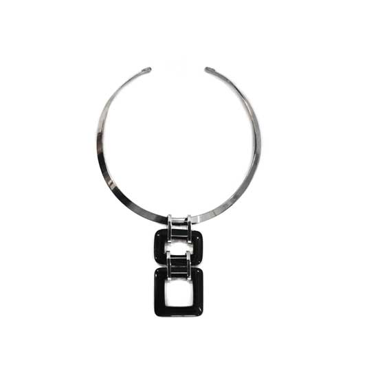 This succinct necklace comes with two black rectangular loops dangling at the front. It is fitted with a large stainless steel ring for a shiny touch. This affordable necklace is a great accessory for ladies.