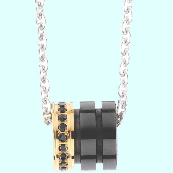 Featured here is a pendant finely crafted in gold plated stainless steel with CZ stones. The classy combination of black and gold offers a fashionable touch. This pendant is a nice adornment to your neckline.