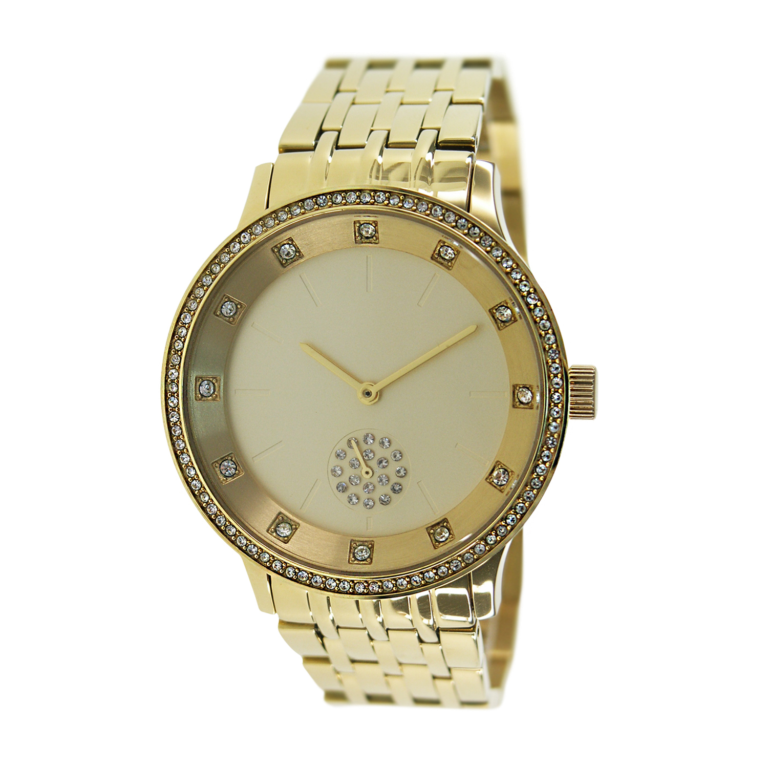 Bezelwith 34 pieces 1.2mm Swarovski crystal, Dome glass, Quartz movement, Stainless steel band, MOQ 100 pcs.