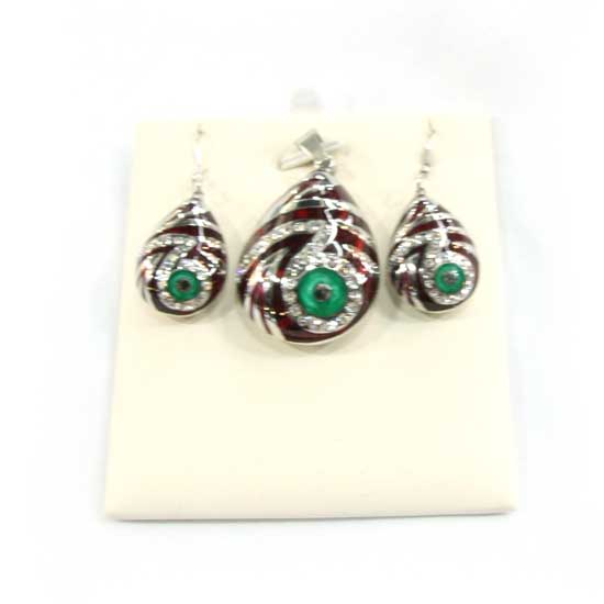 This ladies' jewelry set is completed by a pair of drop earrings and a pendant. The elegant teardrop-shaped jewelry is crafted with quality stainless steel for lasting shine. Adorned by lustrous resin pieces, this elegant jewelry set is finished with a special touch.