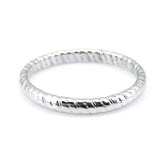 This stainless steel ring boasts a modest and elegant style. The silvery band is finely embellished with a pattern of simple lines. The unpretentious design makes this ring a perfect everyday accessory.