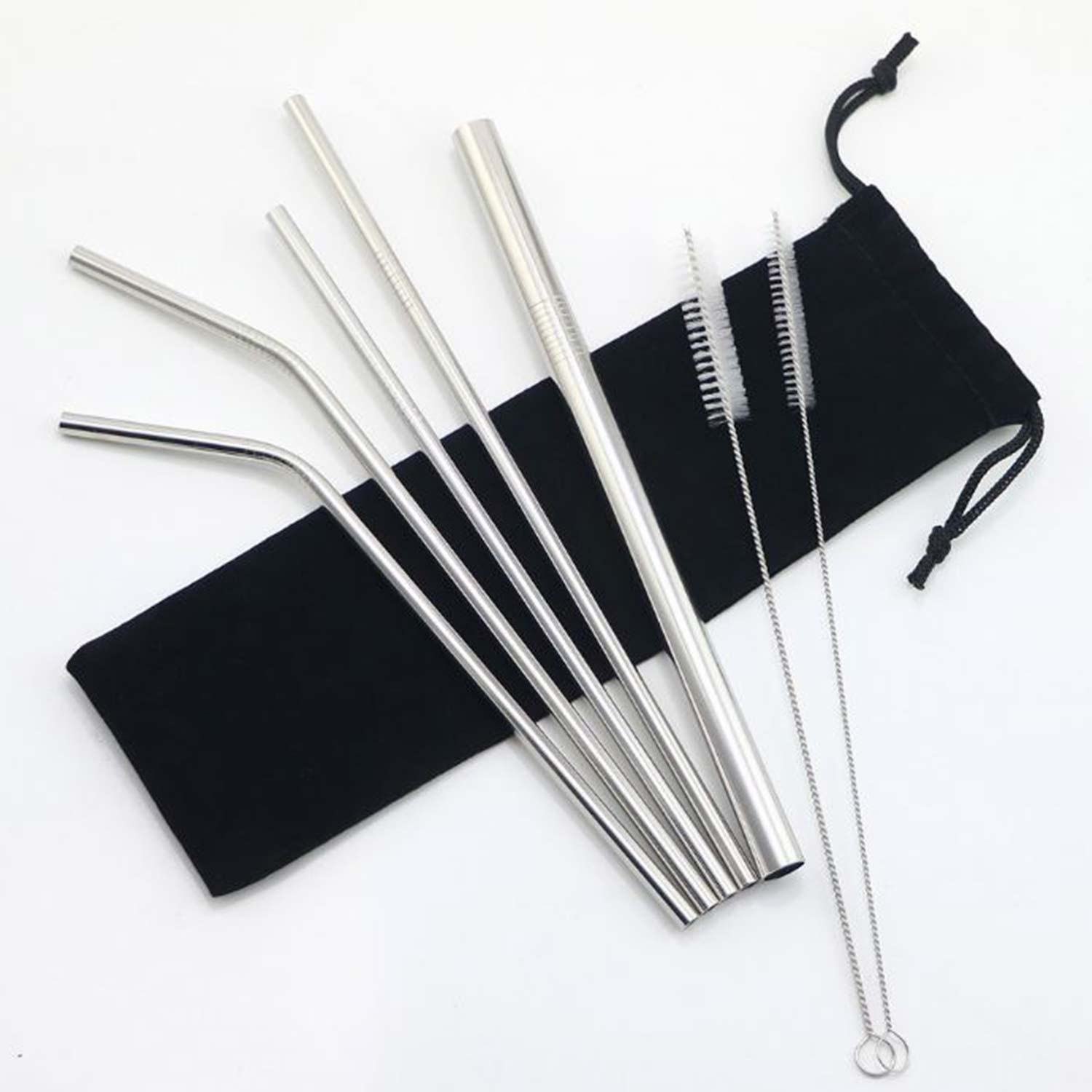 • 304 Stainless Steel, 7 PCS Set, 8.5 Inches, including 2 bent, 2 straight, One Big Straight, 2 Brushes, Packed in a Velet Pouch
