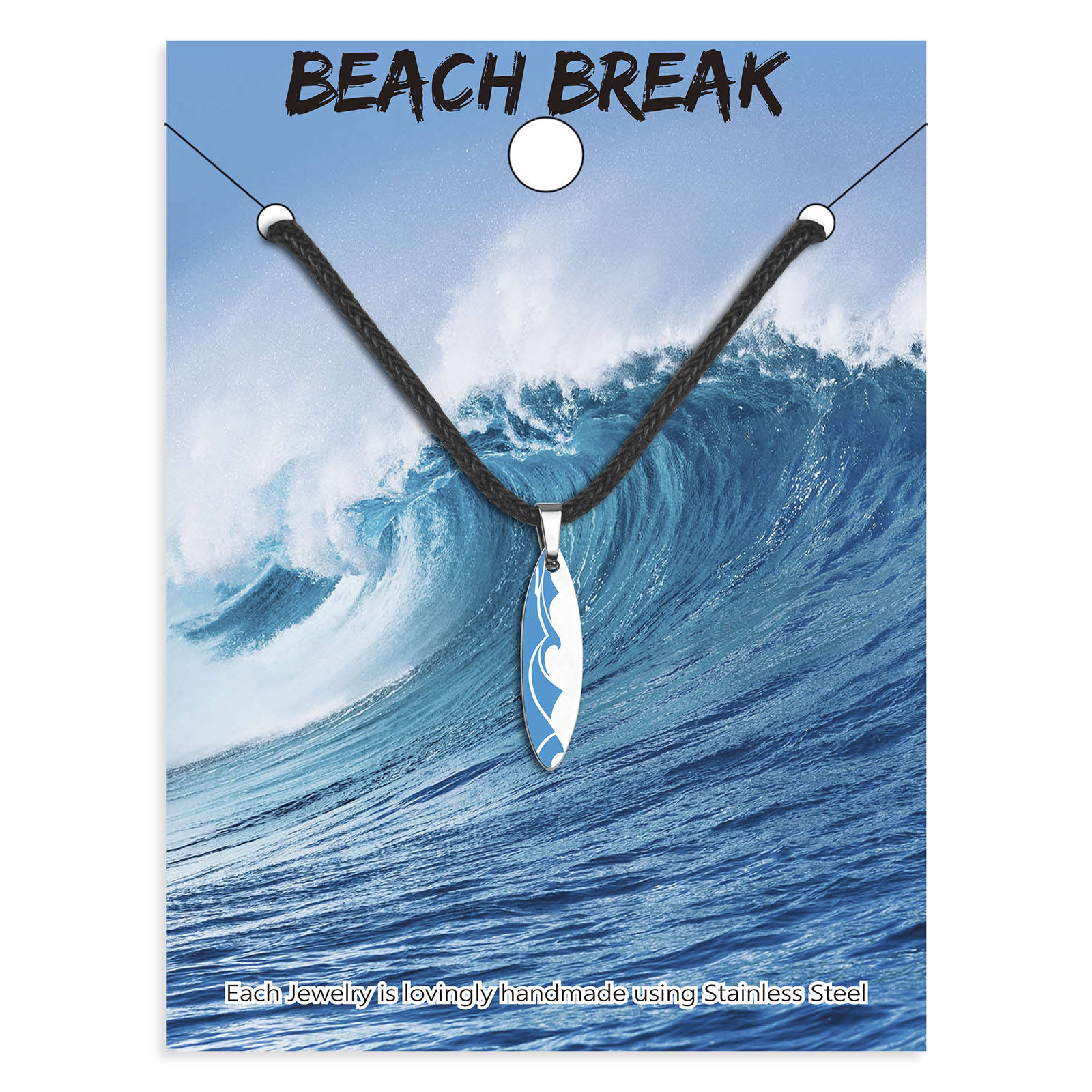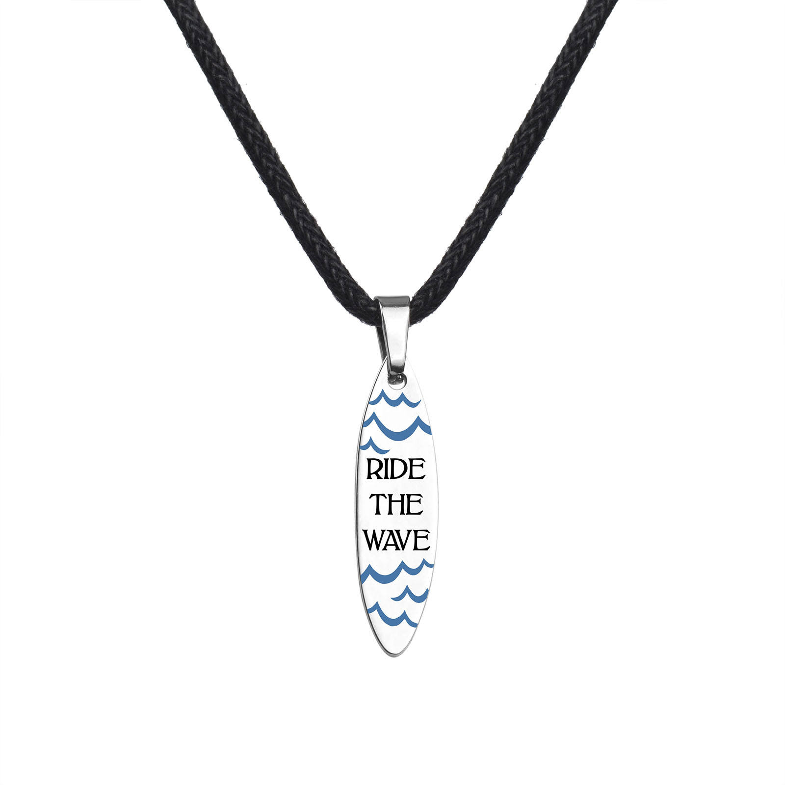 ❤SURFBOARD NECKLACE- Surfboard pendant necklace on a adjustable black cord with ocean wave, beach charm and inspirational quotes engraving designs. The surfer necklace is perfect for surfers, women and men who love surfing.