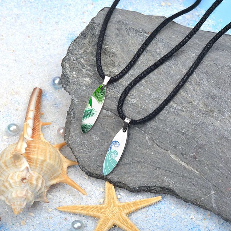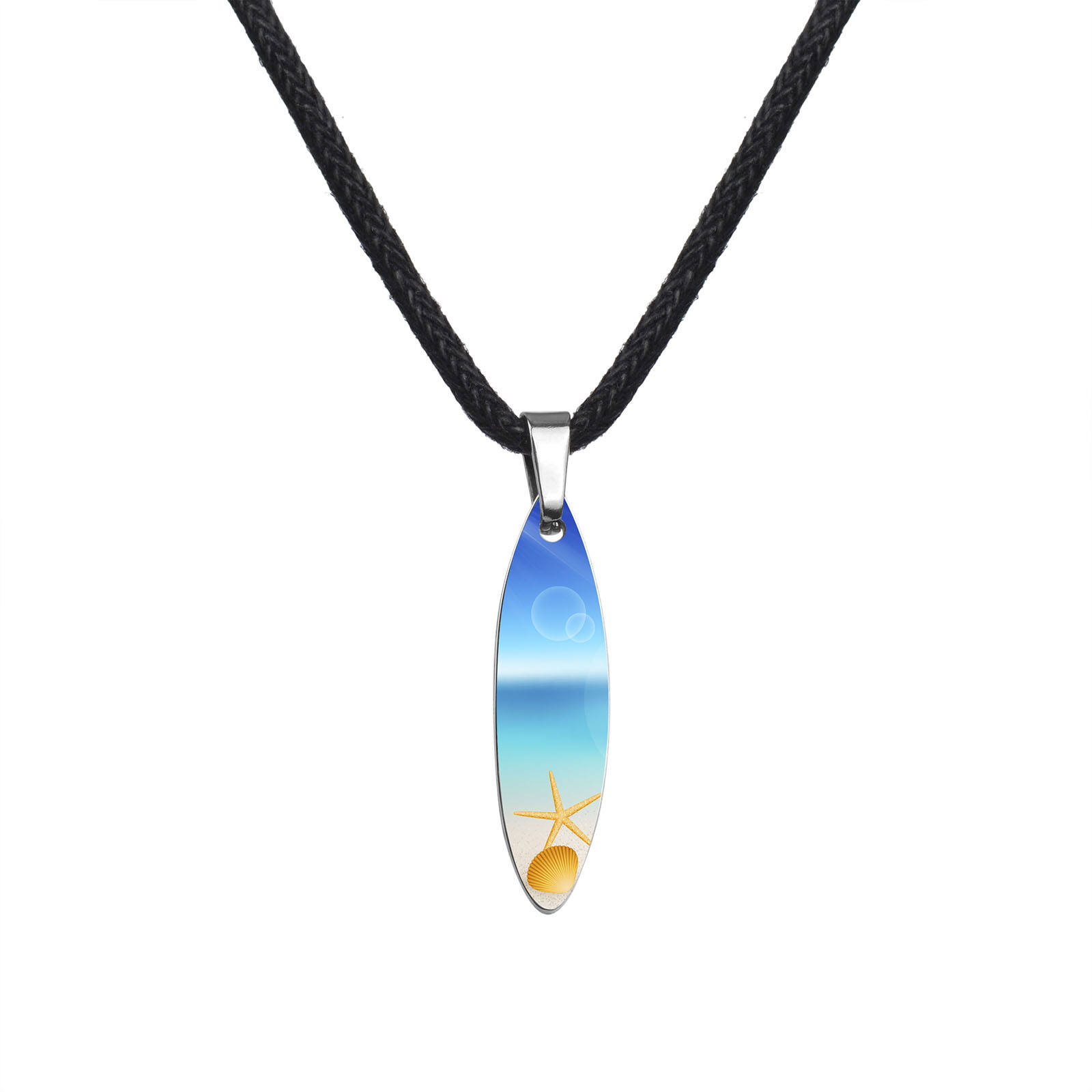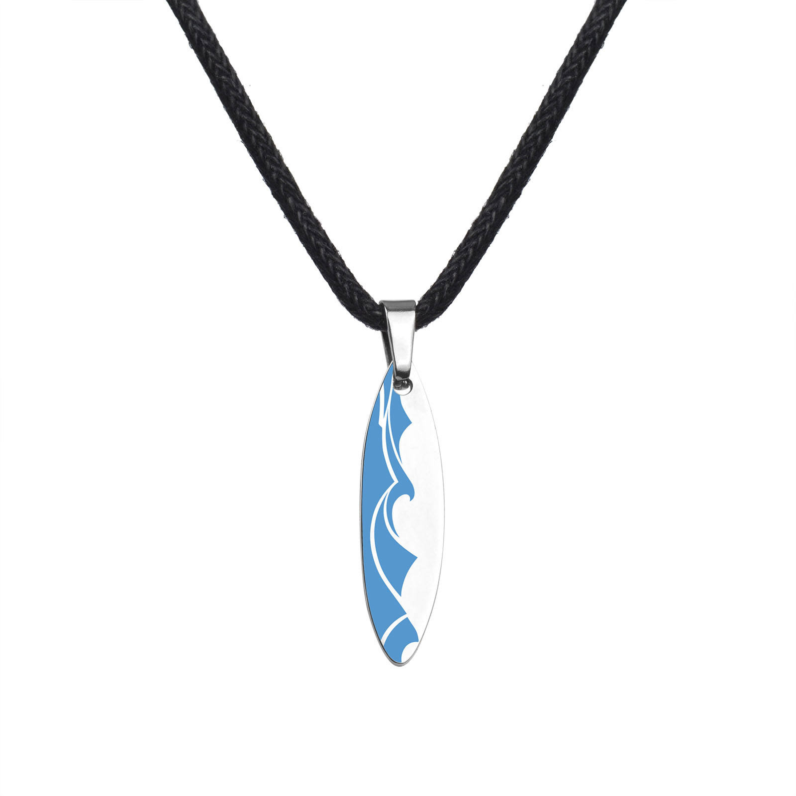Stainless Steel Surfboard Necklaces Black Leather Surf Pendant Necklaces For Men