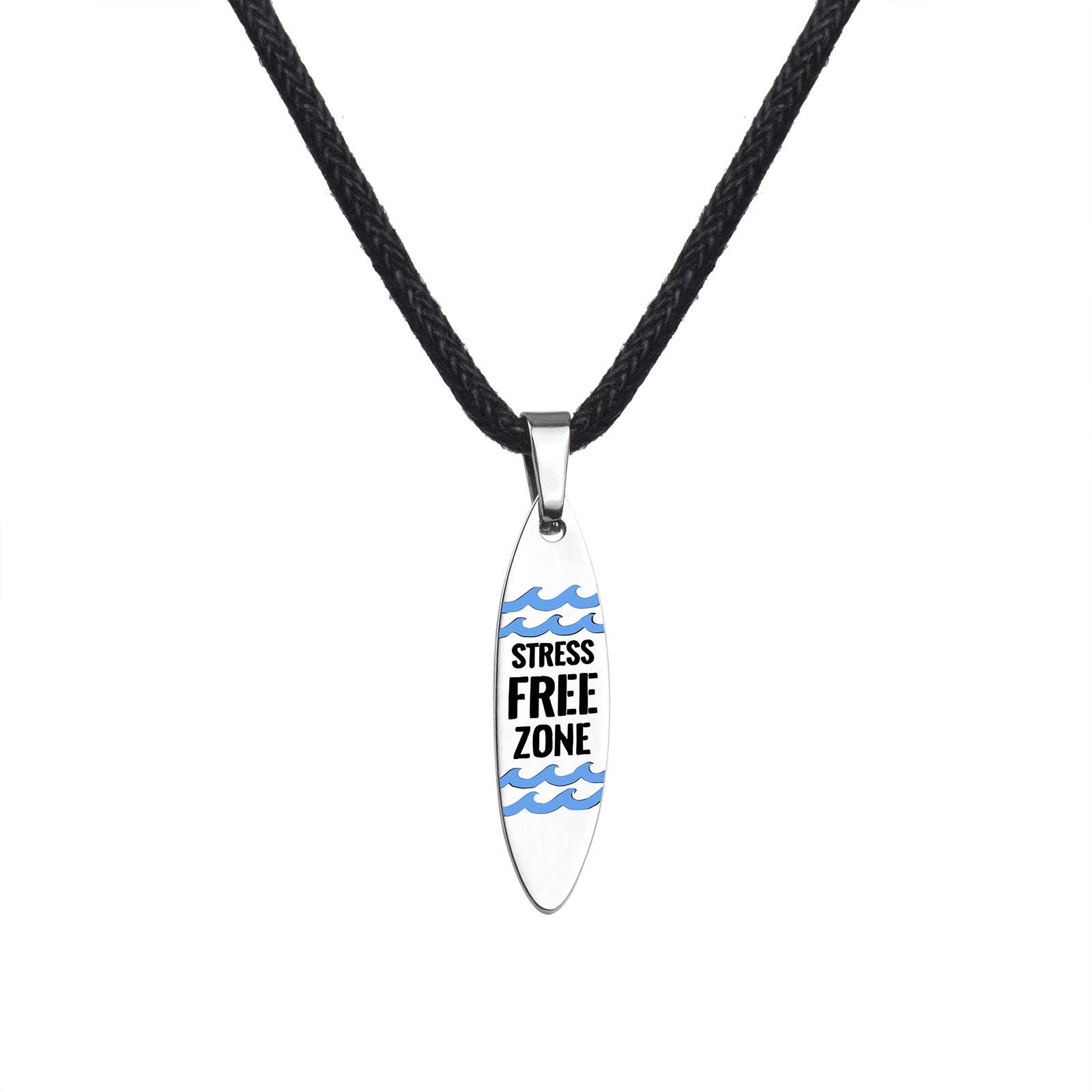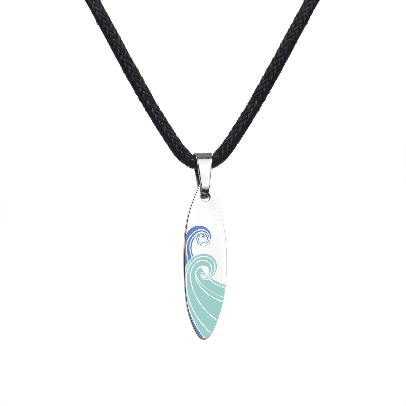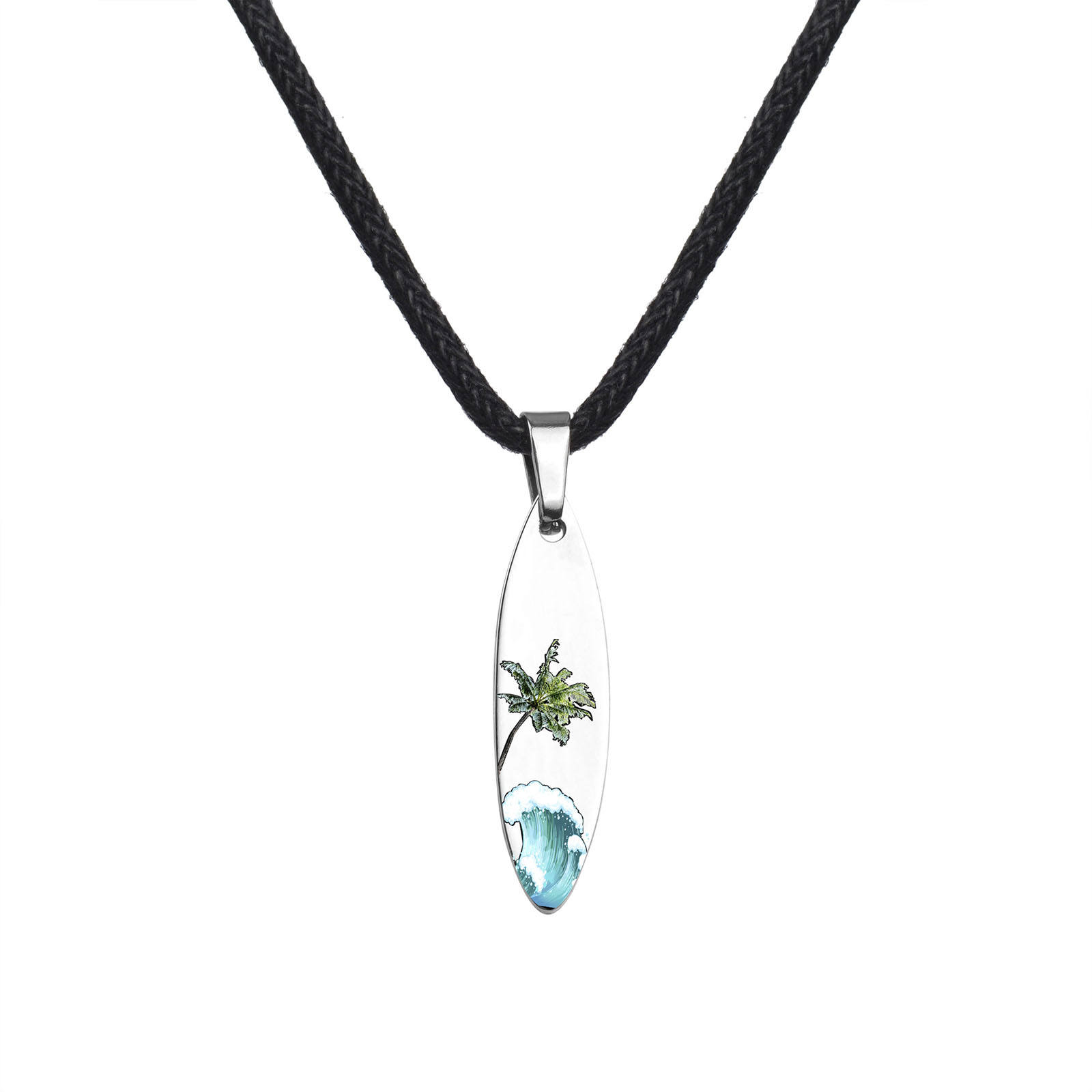 Stainless Steel Surfboard Necklaces Black Leather Surf Pendant Necklaces For Men