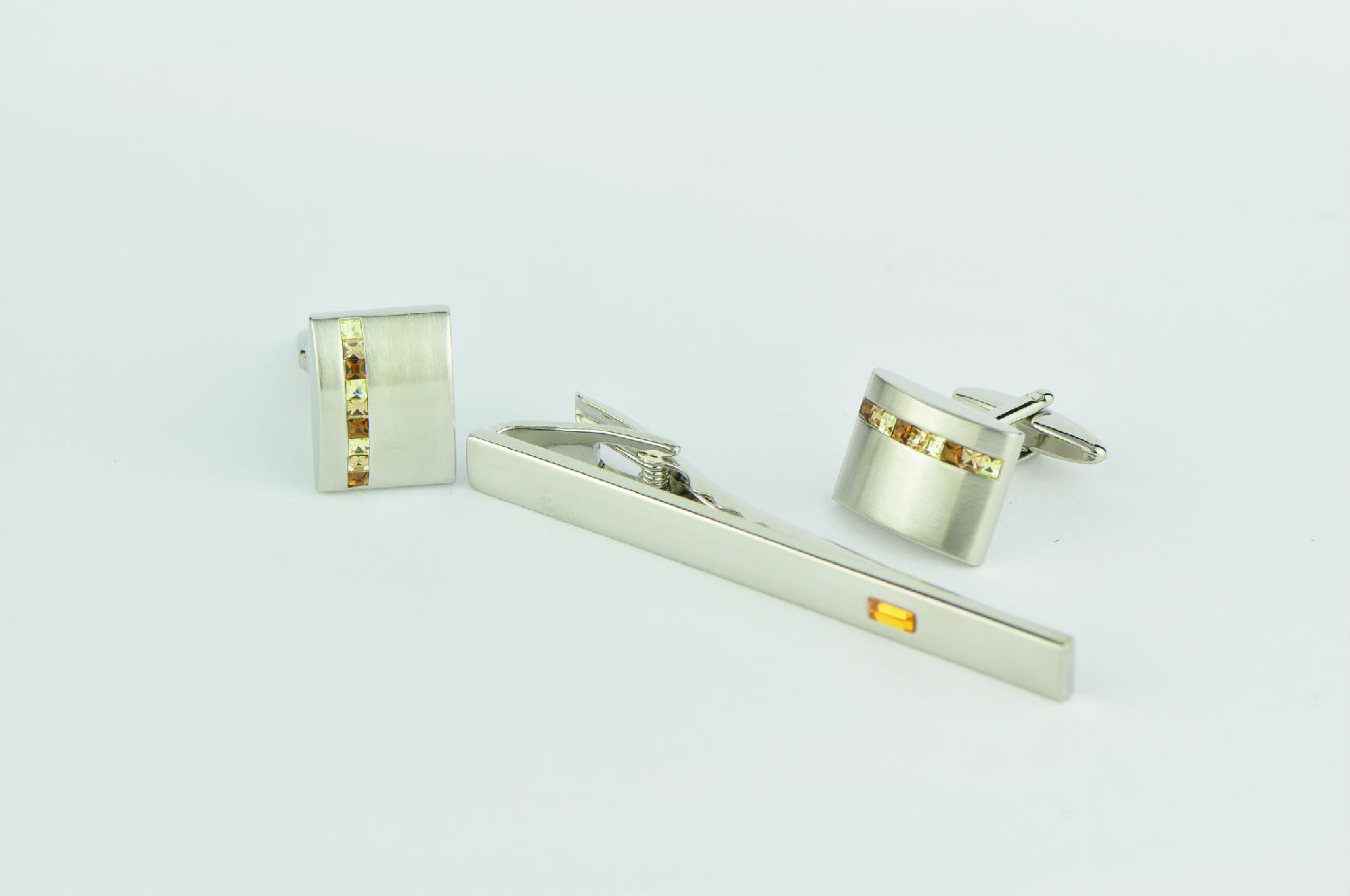 • Stainless steel tie bar and cuff link set. We can make your own design, low price with good quality, can put your logo