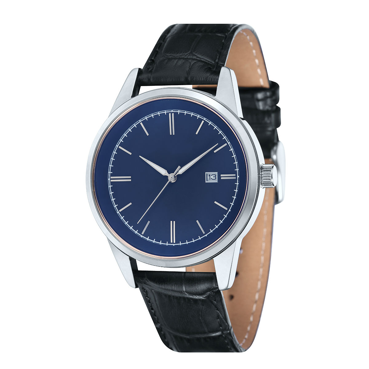 • Stainless steel case, matt dial applied indx, genuine leather strap, 5 ATM, 3 hands japan date movement