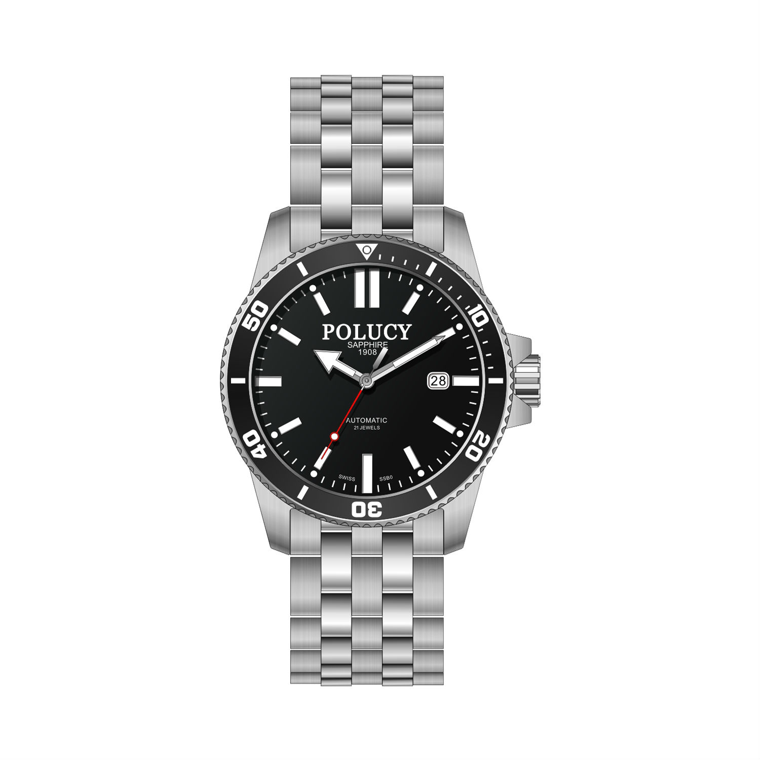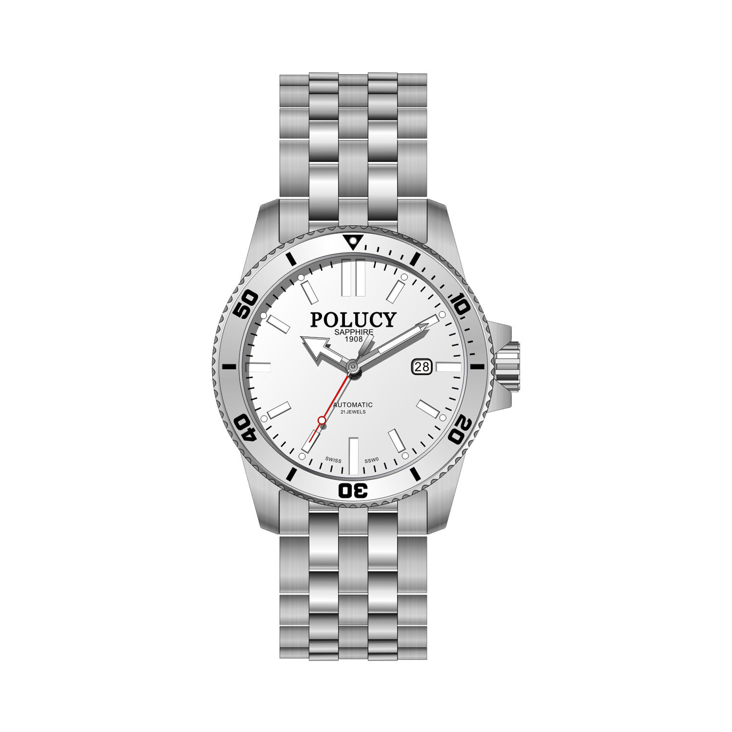 - Date indication next to 3 o’clock.