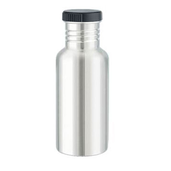 Displayed is a stainless steel water bottle coming with a smooth contour. It can be at most filled with 500ml water or other beverages. Its fairly slender body makes it easy and comfortable to grip.