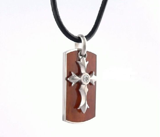 Featured here is a pendant with a cross design. The delicate pendant highlights stainless steel construction for long-time wearing. Adorned with wood and CZ stones, this pendant goes well with your daily outfits.