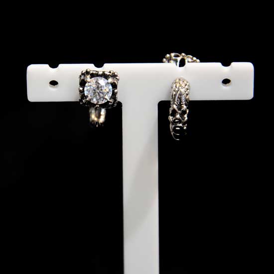 Showcased here is a pair of bold stainless steel earrings designed in great detail. A round sparkling zircon is added for a decorative touch. The unique texture of steel appeals to men.